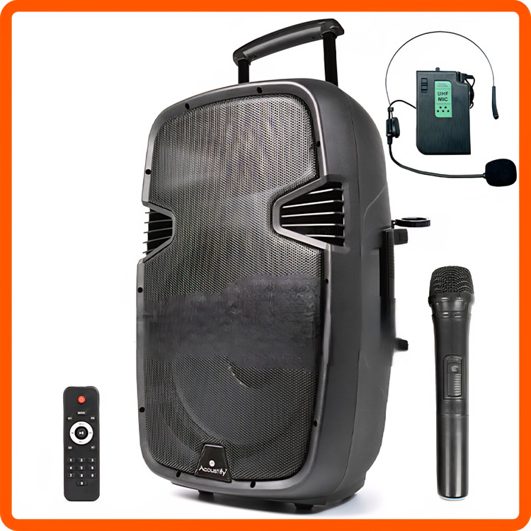 باند شارژی 15 اینچ با دو میکروفن بی سیم ACOUSTIFY PRO15 مناسب اجراهای زنده در محیط های باز و بسته، خوانندگی به همراه نوازندگی، پخش موسیقی در برنامه های ورزشی و جشن ها و انواع مراسم های سخنرانی و … کاربرد دارد.