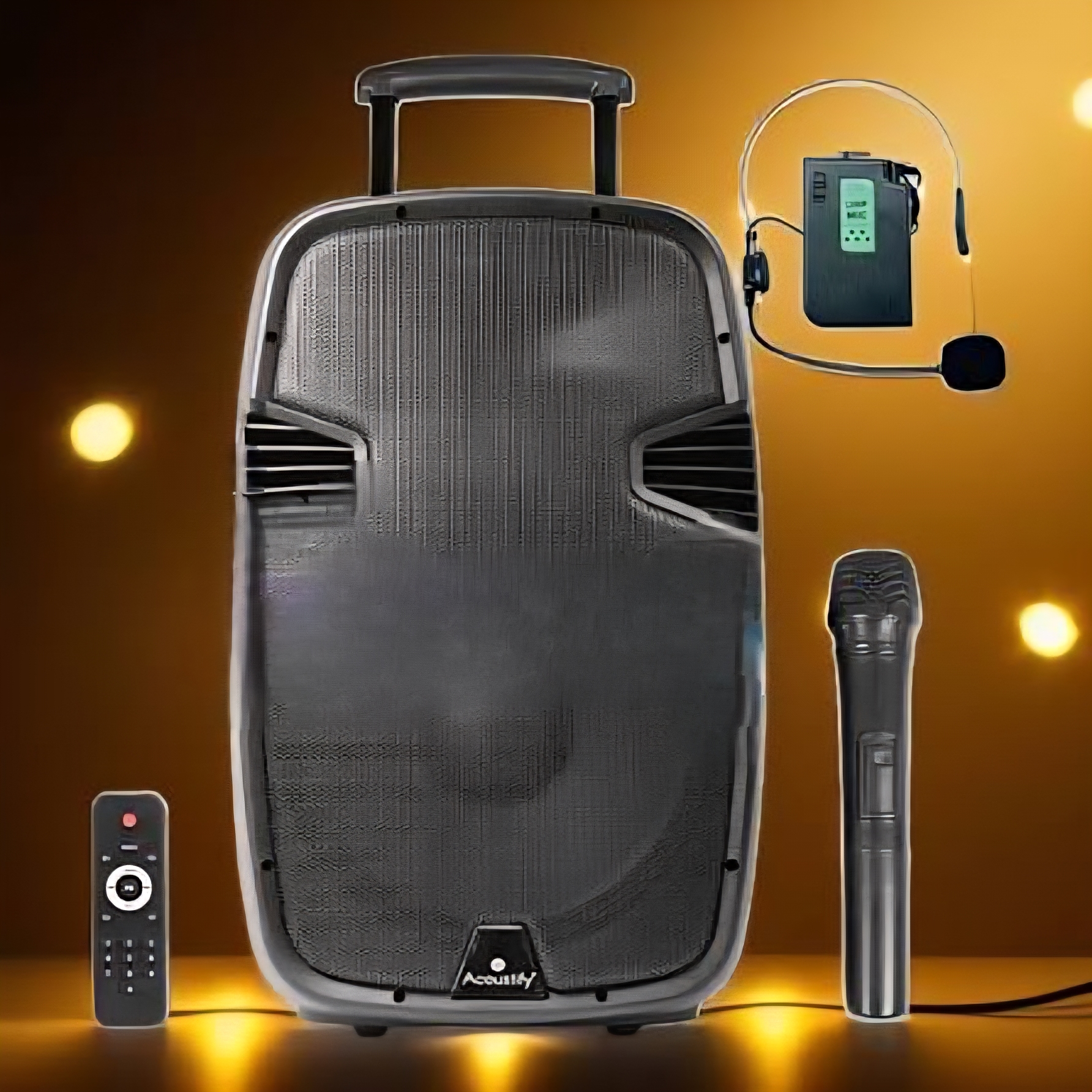 اسپیکر پرتابل آکوستیفای مدل pro 15 شارژی سایز ۱۵ اینچ با 2 میکروفن بی سیم