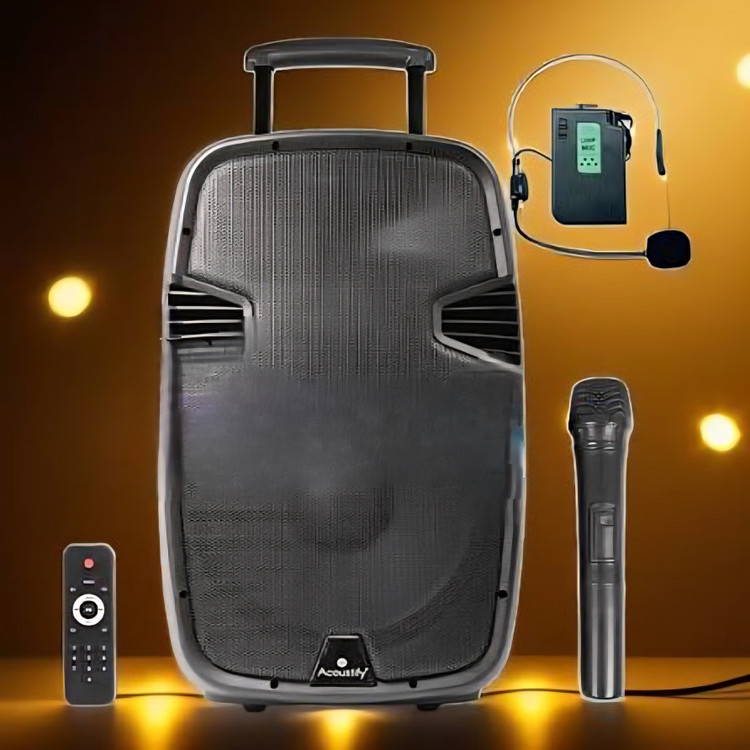 بدنه بلندگو قابل حمل 15 اینچ اکتیو ACOUSTIFY فایبرگلاس مقاوم بوده که با داشتن چرخ و دستگیره بصورت چمدانی قابل حمل است. همچنین دارای سیستم پخش صوت TWOWAY (تو وی) بوده که سبب تفکیک و شفافیت فرکانسی بالایی نسبت به بلندگو های شارژی فول رنج تک بلندگو می شود.