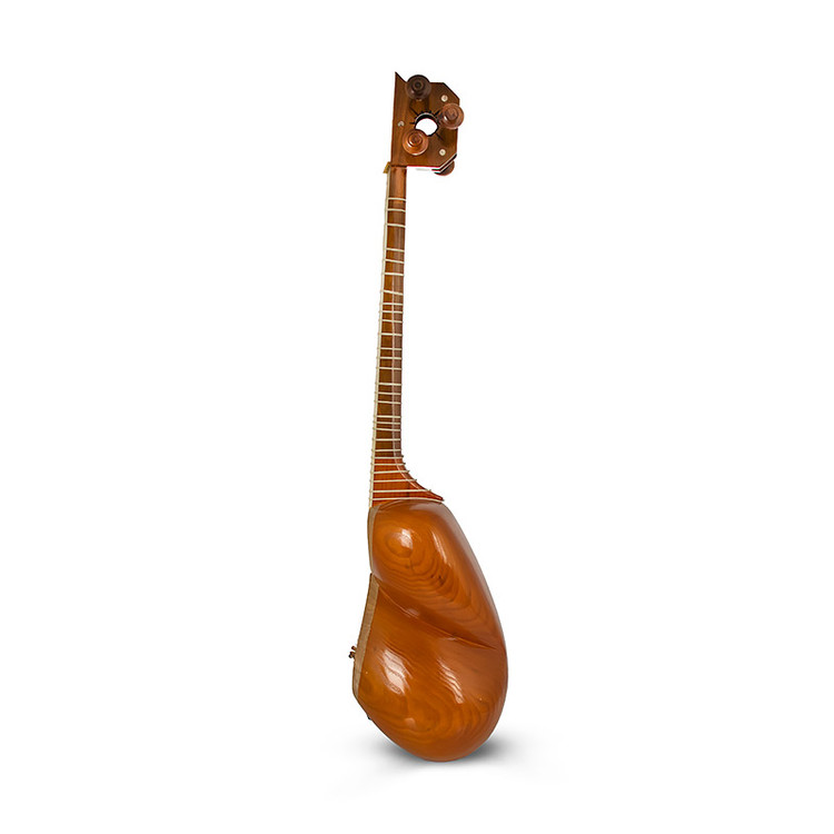 سالیان دراز به هیچ وجه دسته دچار تابیدگی و مشکل نمی شود. دو طرف فینگر بورد دسته از جنس استخوان درجه یک با پرداخت عالی است و وسط دو استخوان چوب محکم و نفیس و نگه کار شده است و در مجموع دسته این ساز عالی است. نکته اینکه دسته این ساز بروی پوست هم ادامه داشته و تعداد پرده های ساز 32 عدد است و ساز سه اکتاو کامل است. جنس پرده ها طبیعی می باشد و صدای تک تک نت ها پشت این پرده ها شفاف و با کیفیت است. کاسه ساز از چوب توت رگه درشت بوده و کاملاً سالم و به اصطلاح بدون گره است. جنس صدای این ساز شباهت زیادی به سبک صدای ساز استاد کیوان ساکت ارك دارد. داخل کاسه ساز با مقار کار شده و دقت تراش داخل کاسه و دهند نفیر بی نظیر است و با دقت فراوان ساخته شده است. الگوی کاسه به اصطلاح بم خان و کاسه بزرگ و قوی است و در گروه نواز قابل شنیدن است. پوست ساز بره تو دلی بوده و صدای این ساز فاخر بسیار گرم و دلنشین است.